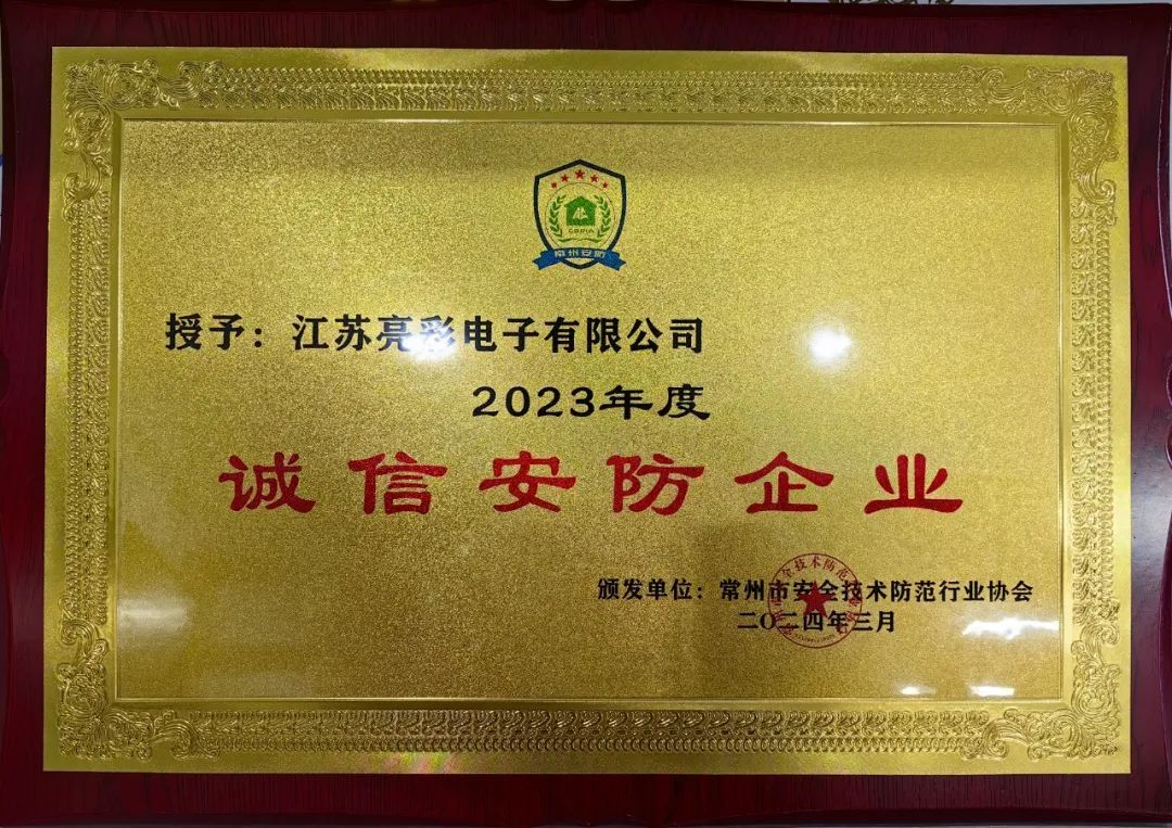 江蘇亮彩榮獲“誠信安防企業”、“優秀安防產品—全彩LED顯示屏”雙獎