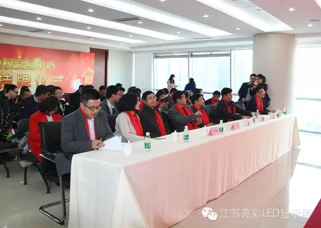 常州市經(jīng)信委副主任、機關(guān)黨委書記-章禮;常州市經(jīng)濟合作處處長、民建綜合二支部主委-劉偉??;常州經(jīng)信委、中小企業(yè)發(fā)展促進中心主任-胥加祥;常州市三會(工業(yè)經(jīng)濟聯(lián)合會、企業(yè)聯(lián)合會、企業(yè)家協(xié)會)綜合部部長-朱婭翡;鹽城商會會長、江蘇開吳建設(shè)有限公司董事長-趙海東;常州清華紫荊學(xué)會會長、江蘇通潤建設(shè)有限公司董事長-高峰;中央畫院常州分院副院長、常州儒商研究學(xué)會會長、常州市霞峰文化藝術(shù)傳播有限公司藝術(shù)總監(jiān)-陸建國;江蘇嘉和利管理顧問有限公司總裁,江蘇省會計學(xué)會副會長,常州市注冊會計師協(xié)會副會長,注冊高級企業(yè)風(fēng)險管理師,高級會計師、中國注冊會計師、復(fù)旦大學(xué)總裁班、上海交通大學(xué)總裁班特聘教授,中國注冊會計師協(xié)會、江蘇省注冊會計師協(xié)會師資 ,中南財經(jīng)政法大學(xué)兼職教授, 永誠聯(lián)合會計師事務(wù)所首席會計師-蔡桂如;常州小微金融服務(wù)中心-顧正義;常州中興華達董事長-張禮建;江蘇金算盤投資管理有限公司董事長-韓芬;江蘇股權(quán)交易中心、江蘇小微企業(yè)融資產(chǎn)品交易中心市場發(fā)展部副總經(jīng)理-董汝洋;江蘇股權(quán)交易中心市場發(fā)展部高級經(jīng)理-徐帆等人出席現(xiàn)場見證了江蘇亮彩電子的掛牌儀式。